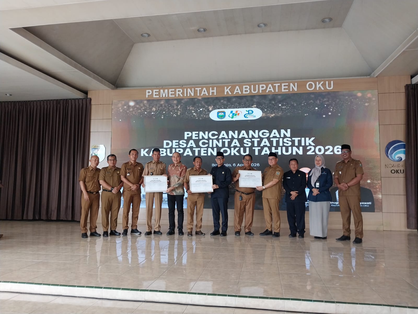 Hal itu disampaikan Bupati dan Wakil Bupati saat Pencanangan Desa Cantik Kabupaten OKU Tahun 2026 di pendopo rumah dinas Bupati OKU pada Senin (6/4/2026). Hadir dalam kegiatan itu Kepala BPS Provinsi Moh Wahyu Yulianto, Kepala BPS OKU Anugerahani Prasetyowati dan 3 Kepala Desa yang terpilih dalam pembinaan Desa Cantik.