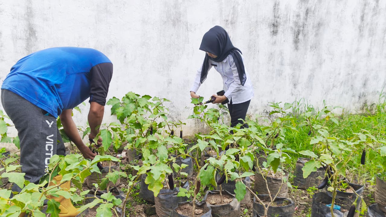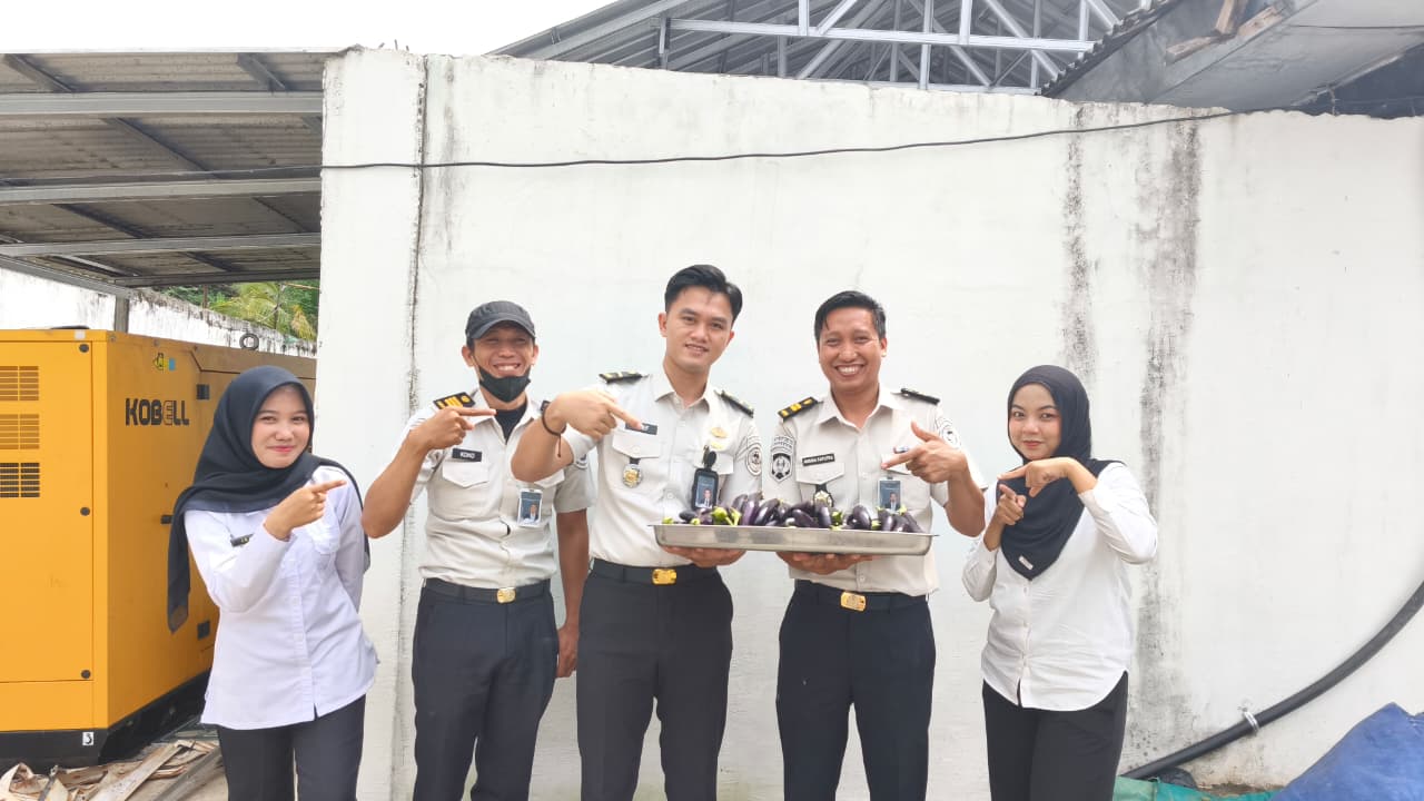 Wujud nyata program pembinaan kemandirian, para warga binaan sukses melaksanakan panen raya sayuran jenis terong di area lahan produktif Rutan, Selasa (28/04/2026).
